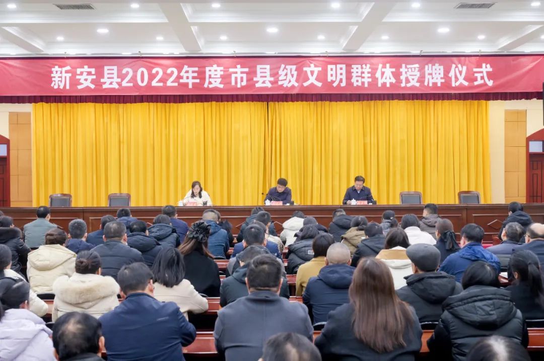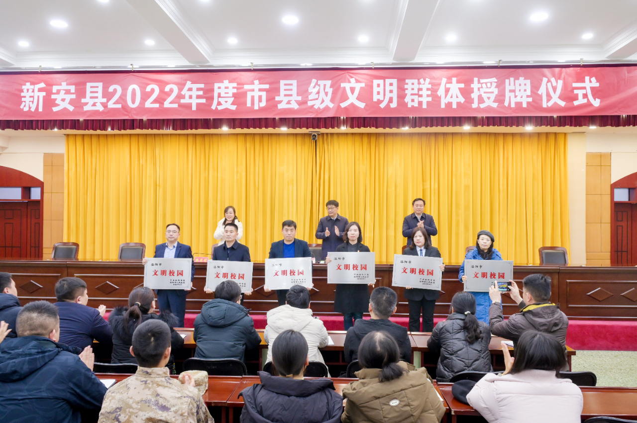 為進(jìn)一步貫徹落實(shí)全國(guó)宣傳思想工作會(huì)議精神,表彰精神文明建設(shè)先進(jìn)單位,激勵(lì)各單位進(jìn)一步弘揚(yáng)社會(huì)新風(fēng)正氣,提升精神文明建設(shè)水平,12月20日下午,新安縣舉行2022年度市縣級(jí)文明群體授牌儀式。縣委副書記王曉輝,縣委常委、宣傳部長(zhǎng)、副縣長(zhǎng)趙宏峰,縣委宣傳部副部長(zhǎng)、精神文明建設(shè)促進(jìn)中心主任張莉莉出席儀式。市、縣級(jí)文明群體及個(gè)人代表共200余人參加儀式。
